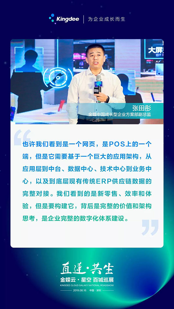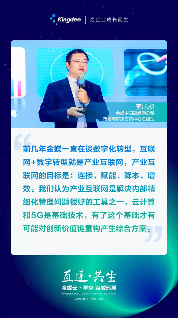 金蝶云·星空本次巡展的主打內(nèi)容分為“新零售云·打糧食;智能制造云·強(qiáng)根基;財(cái)務(wù)云·心未來”三大模塊,匯聚金蝶中國總裁沈崇鋒、金蝶中國高級副總裁李旭昶、華為云應(yīng)用平臺解決方案總監(jiān)饒爭光、深圳市物聯(lián)網(wǎng)智能技術(shù)應(yīng)用協(xié)會聯(lián)合執(zhí)行會長湯軍、廣州阿米巴經(jīng)營管理研究院長高然等專家學(xué)者,打造“企業(yè)上云全要素”解讀,旨在幫助企業(yè)解決當(dāng)前經(jīng)營過程中面臨的困境,打造基于云端的競爭優(yōu)勢,重構(gòu)行業(yè)價(jià)值鏈。